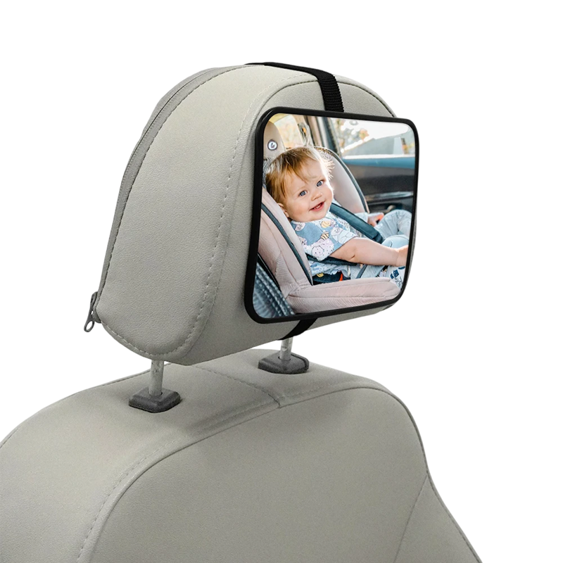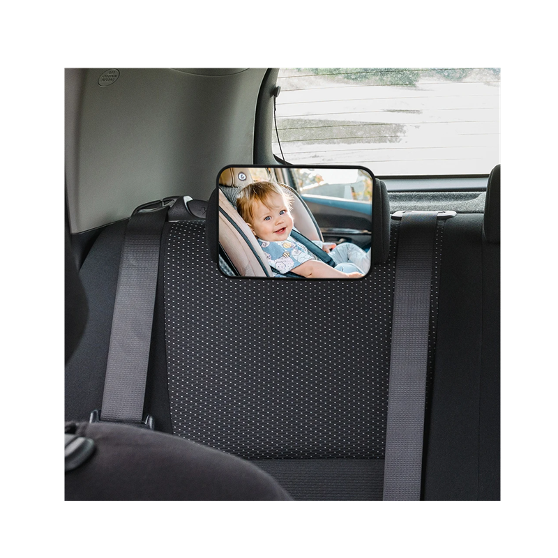 Specchio per auto infrangibile per bambini 18,7x13,5 cm Ampio campo visivo Specchio di sicurezza trasparente Cinghie regolabili Poggiatesta