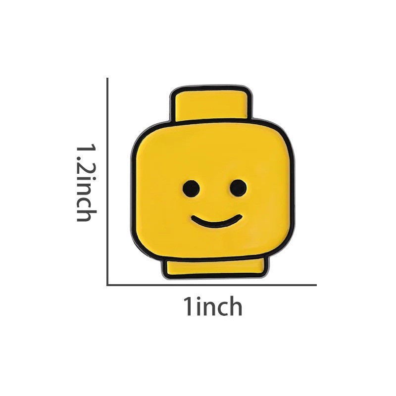 Spilla da ufficio 2,5 x 3 cm Lega di zinco Testa di personaggio Lego Giallo distintivo decorativo per giacca zaino borsa