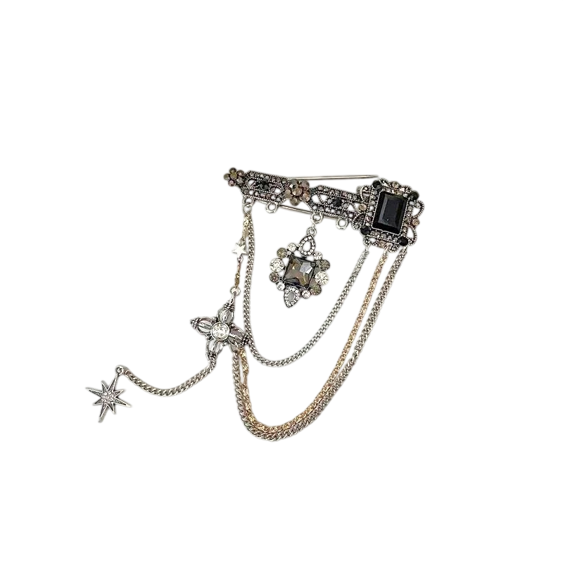 La base della spilla è in lega di zinco, che consente una costruzione solida e una lavorazione dettagliata dei singoli elementi. Le catene sono accuratamente fissate e arricchite con dettagli decorativi che aumentano il valore estetico del gioiello. La spilla può essere appuntata su cappotti, giacche, vestiti, maglioni o addirittura su borse, offrendo così ampie possibilità di utilizzo. Grazie al design universale, si adatta sia a outfit minimalisti che a quelli più audaci. È la scelta ideale per le donne che desiderano aggiungere originalità al proprio stile.