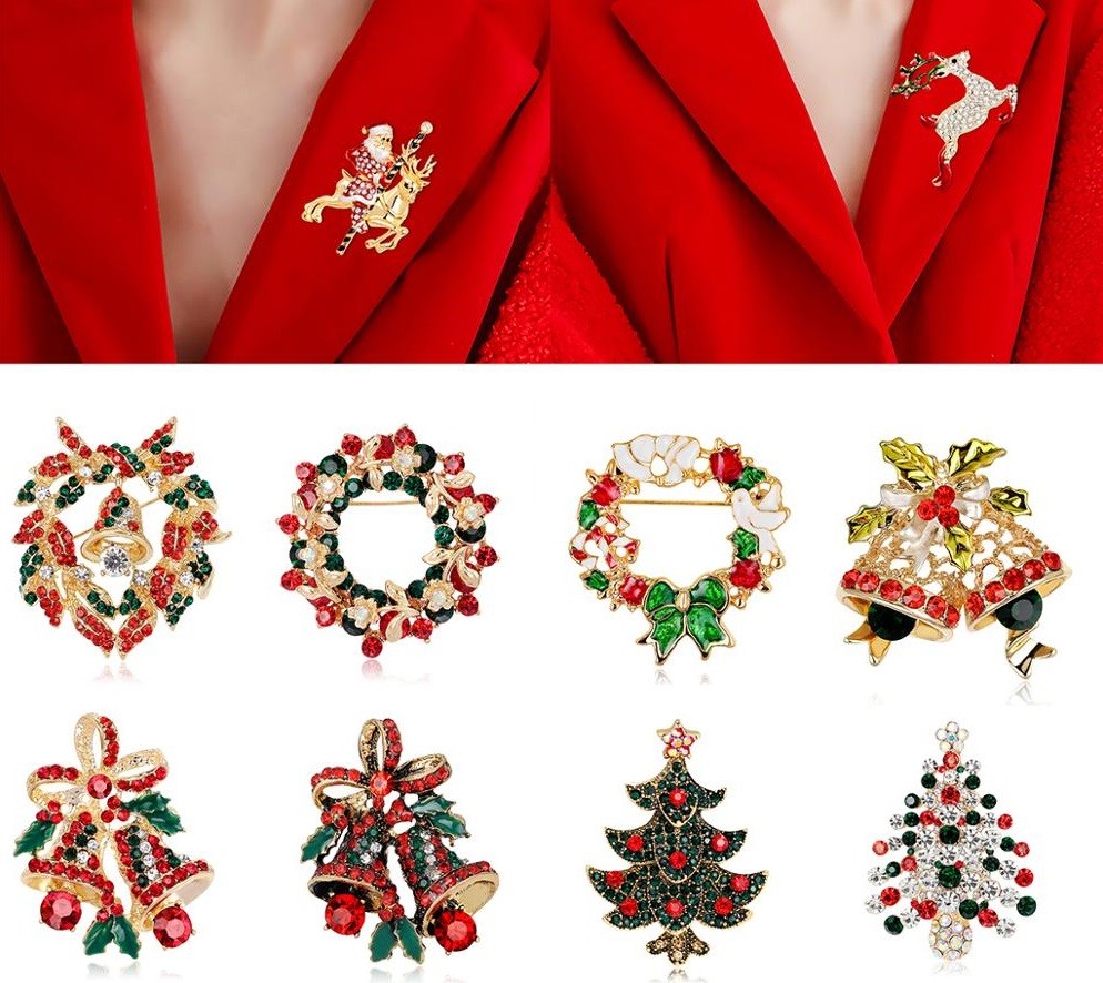 Accessorio di moda originale - spilla in metallo colorato con motivo natalizio.