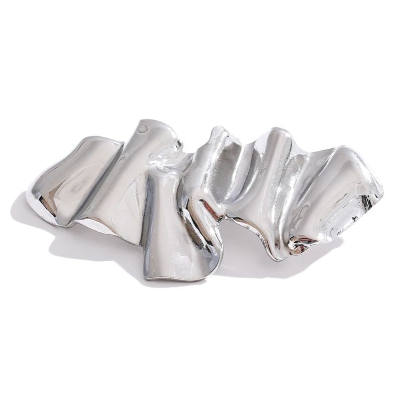 Questa spilla in metallo con forma geometrica astratta rappresenta un accessorio distintivo per l'uso quotidiano. Il suo design irregolare crea un interessante effetto visivo che cattura l'attenzione a prima vista. Grazie alla sua realizzazione versatile, si adatta come accessorio per abbigliamento, bavero, cappotto o zaino. La superficie metallica lucida sottolinea l'aspetto moderno e conferisce alla spilla un carattere deciso.