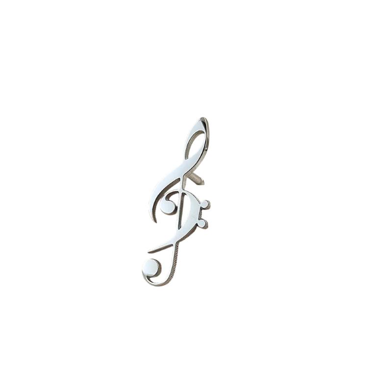 La spilla è adatta come accessorio per un outfit quotidiano o per occasioni speciali. Grazie al suo aspetto universale, può essere facilmente abbinata ad altri gioielli. Questa spilla può anche servire come piccolo regalo per persone legate alla musica. La sua realizzazione pratica e il design semplice la rendono un accessorio stiloso e discreto.