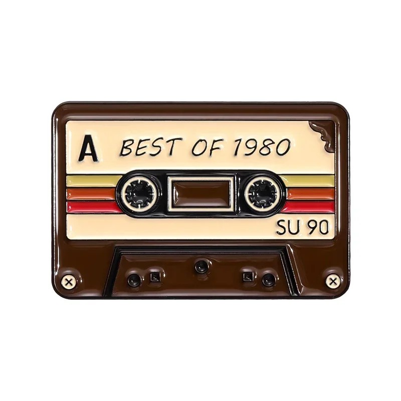 Spilla smaltata a forma di cassetta musicale Best of 1980 circa 1,8 × 2,8 cm spilla in metallo marrone-beige retro distintivo per giacca zaino borsa