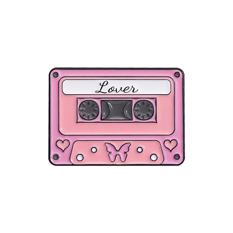 Questa spilla smaltata ha una dimensione di circa 2,8 × 2 cm, quindi può essere comodamente appuntata su giacca, colletto, zaino o borsa. La forma classica della cassetta è facilmente riconoscibile e arricchita da dettagli che si adattano allo stile retro. La scritta Lover costituisce l'elemento visivo principale e conferisce alla spilla un aspetto caratteristico. La spilla può essere utilizzata come piccolo gioiello o come distintivo per completare l'outfit.