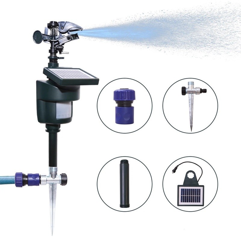 Lo spruzzatore a movimento funge da dispositivo per proteggere il giardino o gli spazi esterni da movimenti indesiderati di animali. Combina il rilevamento di movimento e calore con una spruzzata d'acqua, che si attiva al rilevamento di movimento nelle vicinanze del dispositivo.