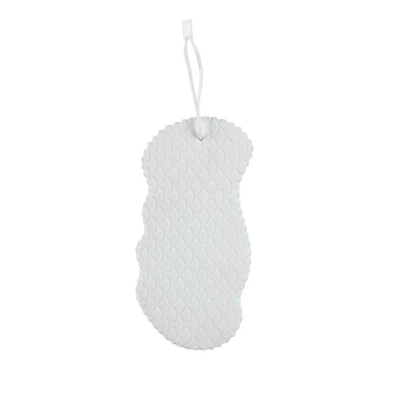 Questa spugna è realizzata in materiale piacevole. Pratica asola per appendere o agganciare al polso. Con dimensioni di 14 x 7 cm, si tiene bene in mano e permette di lavare tutto il corpo.