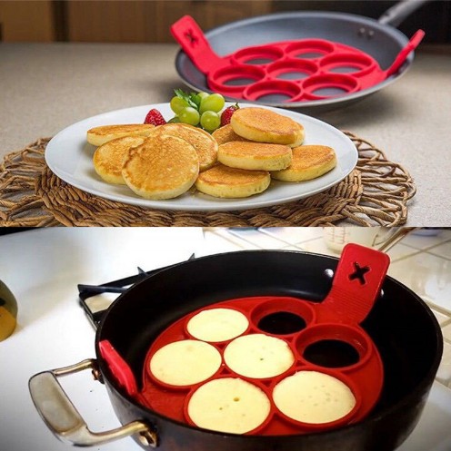 Lo stampo in silicone si posiziona facilmente sulla padella, versando l'impasto per pancake in ogni apertura.