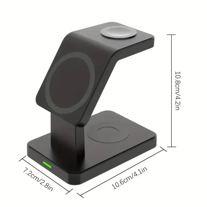 Stazione di ricarica wireless magnetica 3 in 1 15 W Dock da scrivania per telefono, orologio e cuffie Design compatto