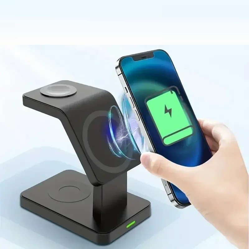 La stazione di ricarica magnetica da scrivania consente la ricarica wireless simultanea di telefono, smartwatch e cuffie in un unico luogo. Descrizione completa