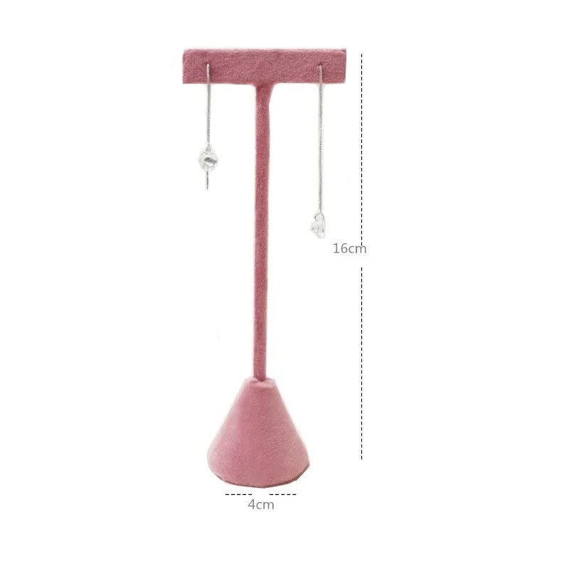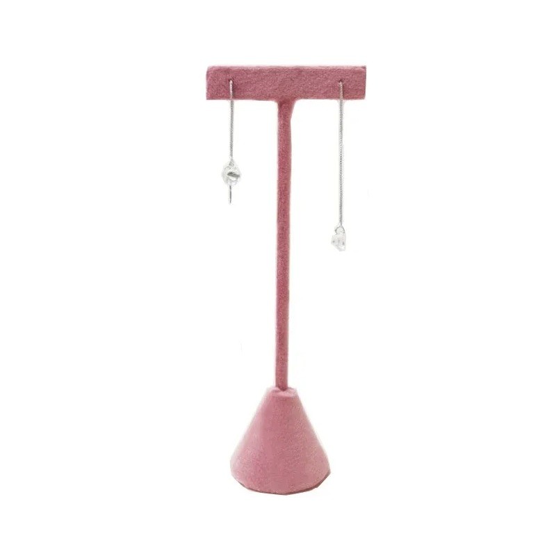 Stendino per orecchini in velluto a forma di T 16 × 4 cm supporto in velluto rosa per gioielli espositore da tavolo