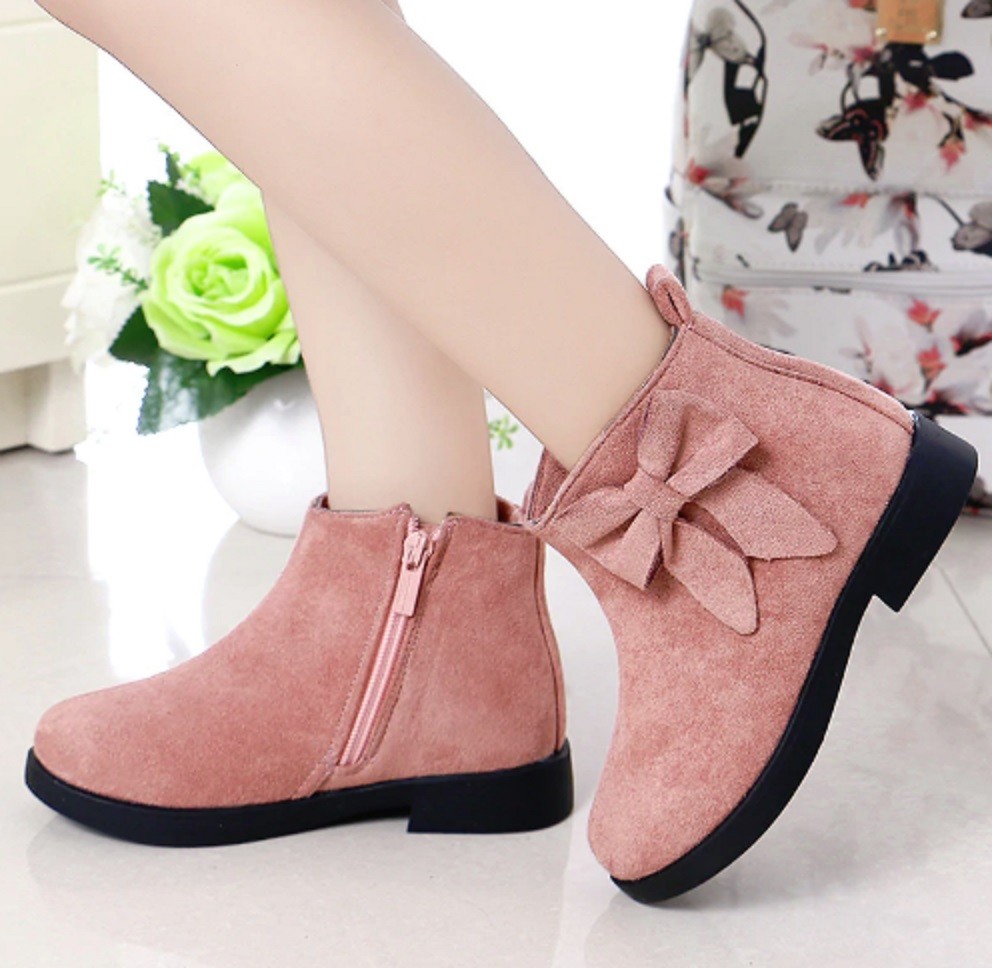 Stivaletti da ragazza decorati con un fiocco, adatti per gonne e pantaloni.