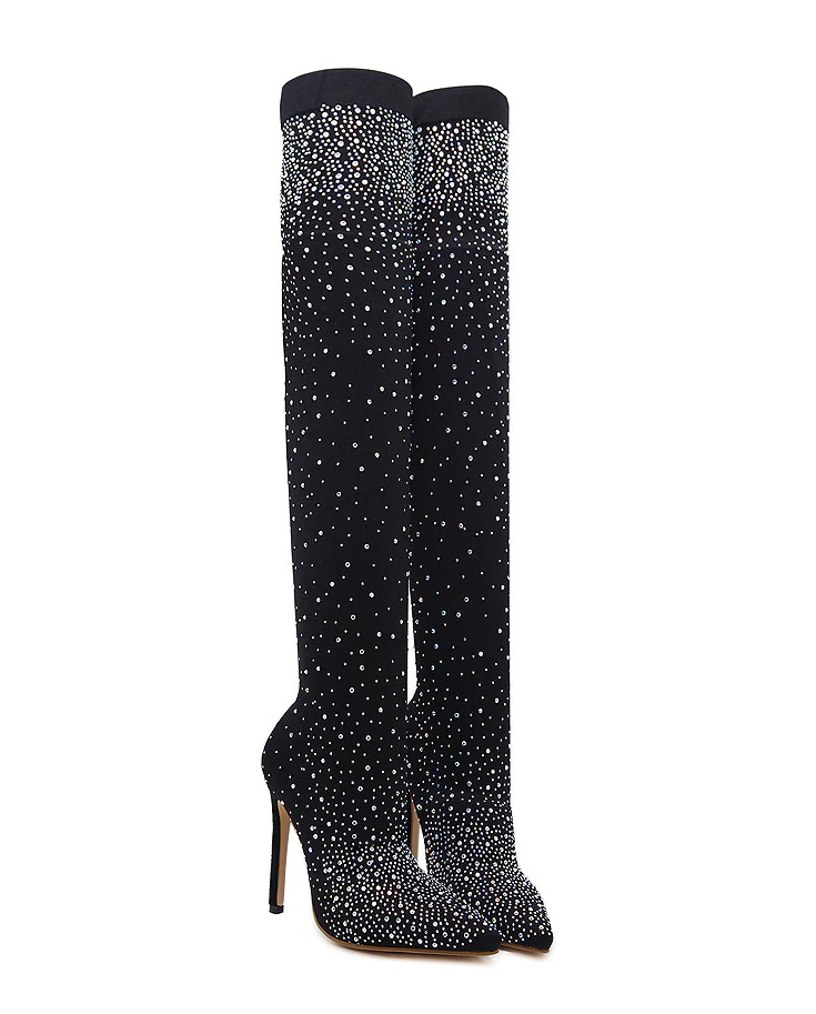 Pagina iniziale Pagina iniziale Scarpe Scarpe donna Stivali donna Stivali da donna sopra il ginocchio con strass