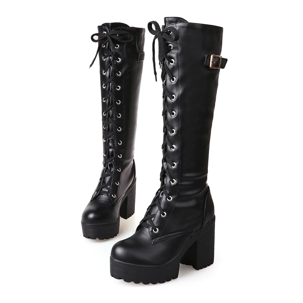 Stivali eleganti con tacco e lacci J1296