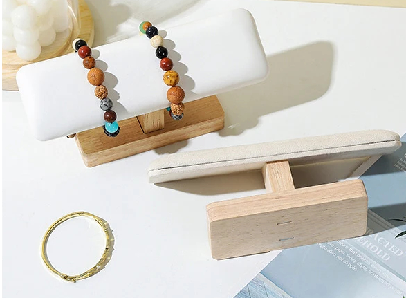 Stojan per bracciali e orologi T-bar 12 × 8,5 × 5 cm supporto in legno con supporto imbottito in pelle per esporre bracciali e orologi