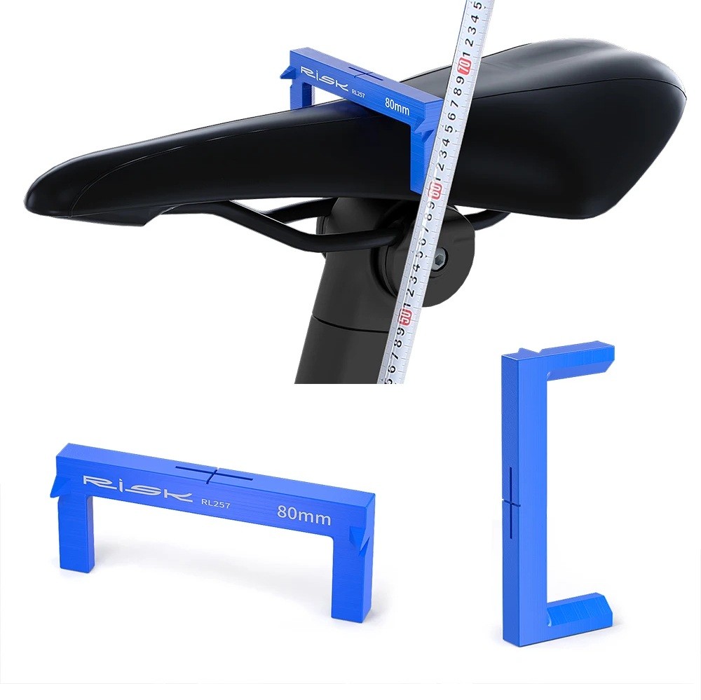 Strumento di misurazione dell'altezza della sella della bicicletta 10 x 4 cm Misuratore di altezza della sella in alluminio blu Regolazione e calibrazione precise per ciclisti