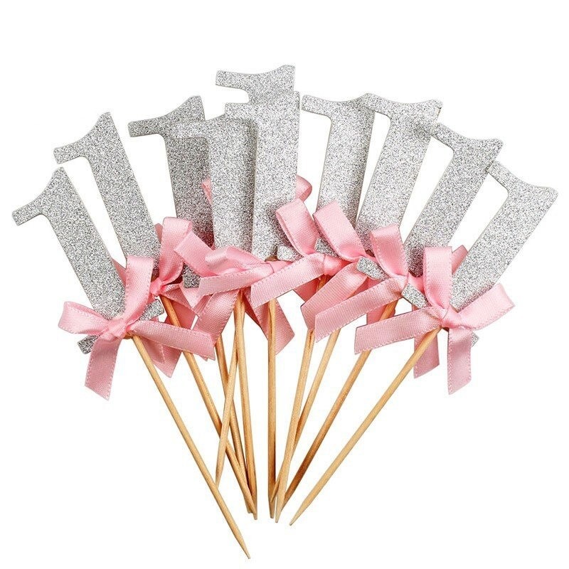 Stuzzicadenti per compleanno 1 anno rosa 10 pz