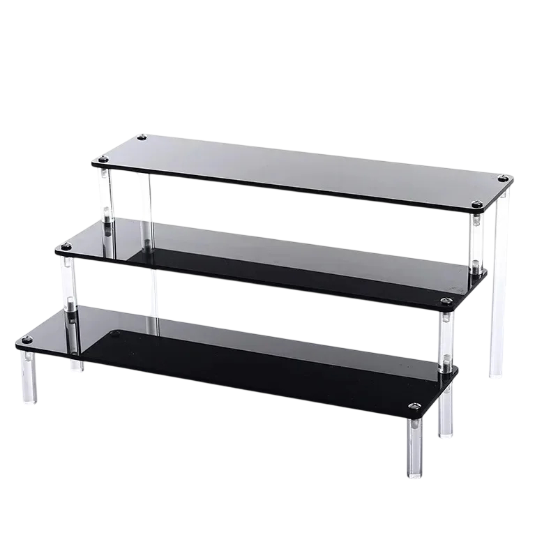 Il supporto in acrilico a tre livelli è una soluzione pratica per un'organizzazione chiara e l'esposizione di piccoli oggetti. Grazie ai tre livelli di altezza, consente di suddividere efficacemente lo spazio e garantire una migliore visibilità dei singoli pezzi. È adatto per figure, profumi, gioielli e altri oggetti da collezione.