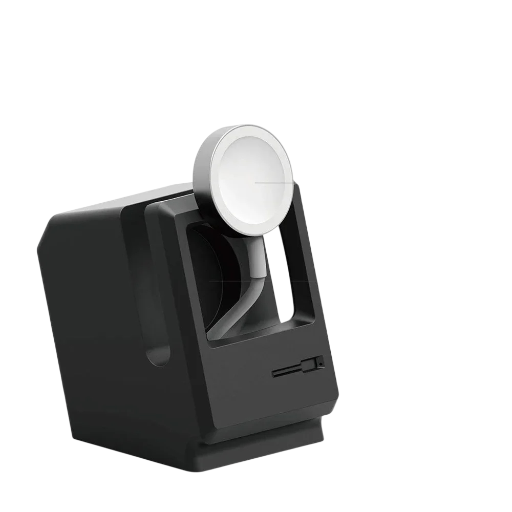 Il supporto è progettato in uno stile che ricorda un computer retro. Grazie alle sue dimensioni compatte, è adatto per scrivanie, comodini o scaffali.