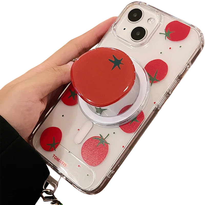 Supporto magnetico per telefono per iPhone 15 Supporto di design con motivo pomodoro Forte fissaggio magnetico su tavolo e a casa