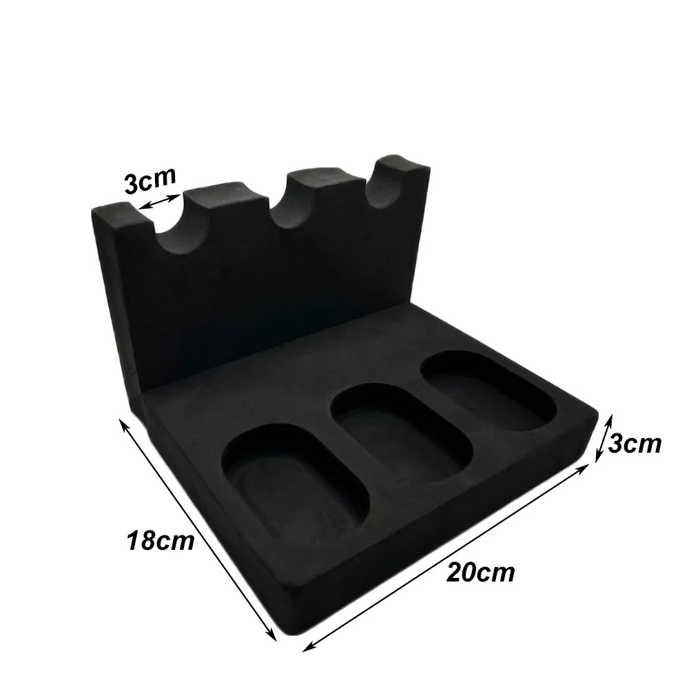 Supporto per armi 3 sloti dimensioni compatte 20×18×3 cm schiuma EVA supporto nero per un'organizzazione chiara e sicura delle pistole