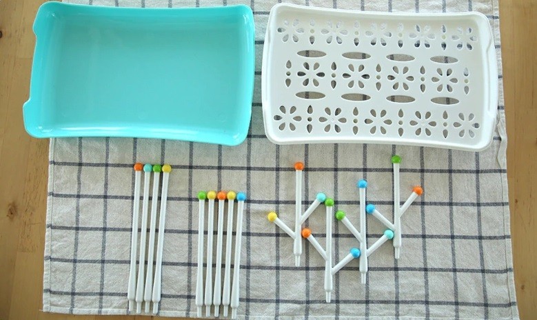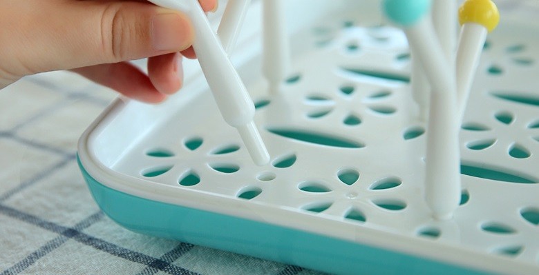 Molto pratico e moderno supporto per bottiglie per neonati, ciucci e tutto il necessario per l'allattamento.