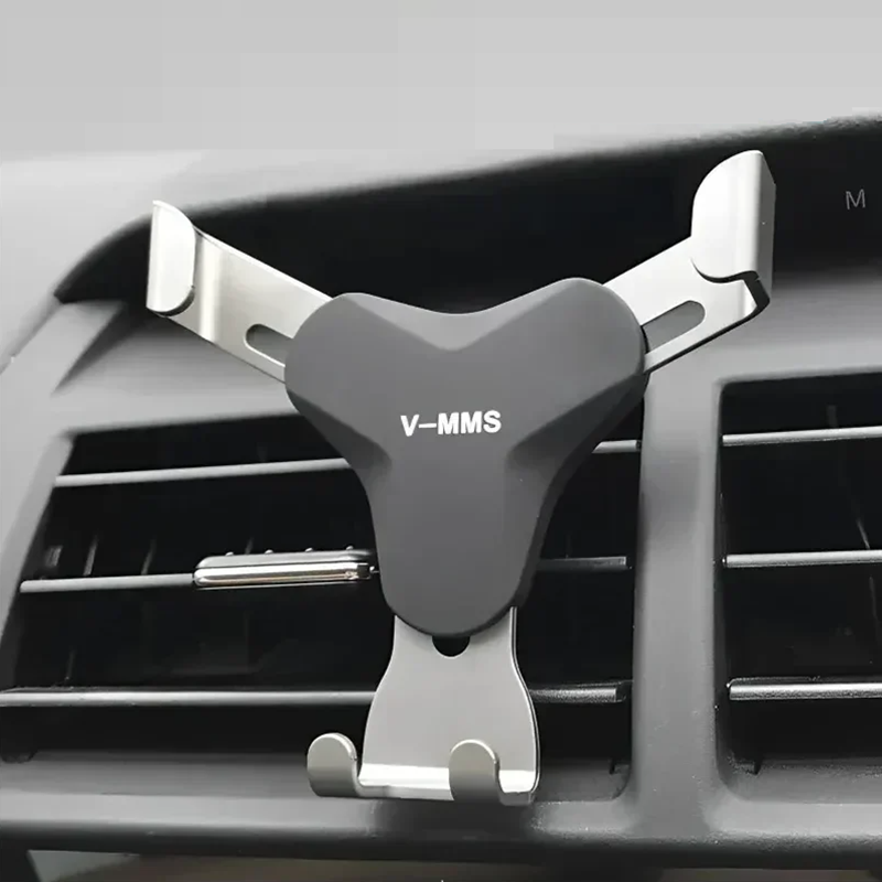 Supporto universale per telefono da ventilazione auto in plastica ABS e gomma, larghezza 9 cm, altezza 8,5 cm. Fissaggio solido e facile installazione senza attrezzi. Descrizione completa