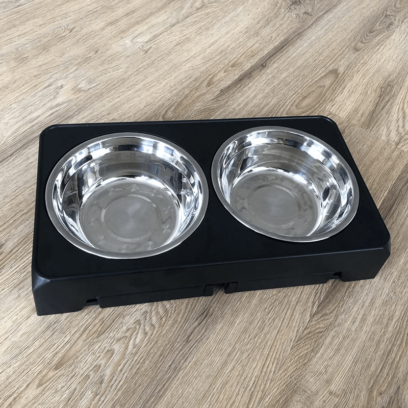 Pagina iniziale Pagina iniziale Articoli per animali Prodotti per cani Ciotole per cani Supporto regolabile elevato per ciotole 44 x 24 x 8 cm Due ciotole in acciaio inox 20 x 6,6 cm Distributore per animali domestici Alimentazione comoda