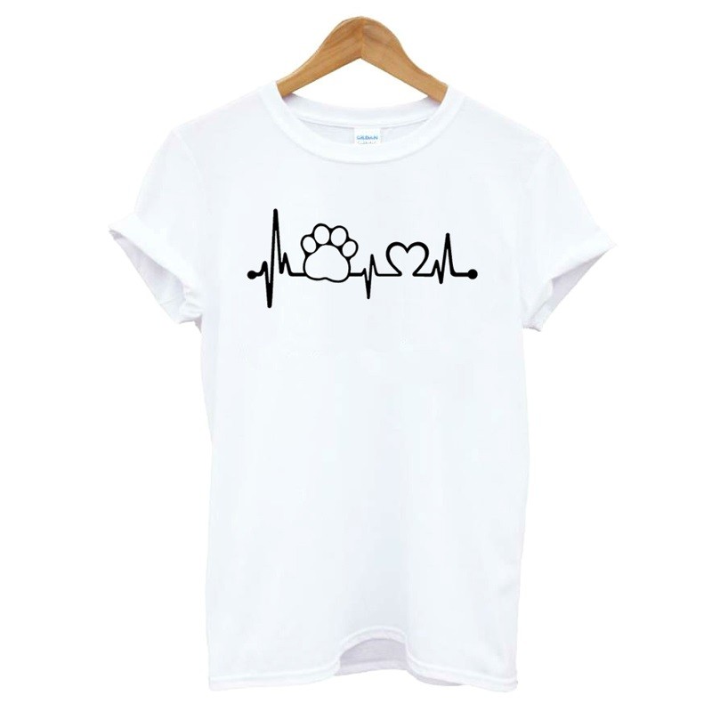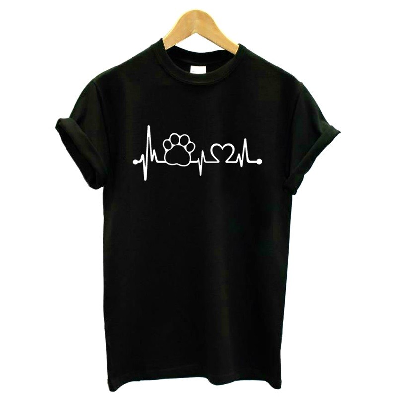 T-shirt da donna con stampa di battito cardiaco e impronta di cane J1798