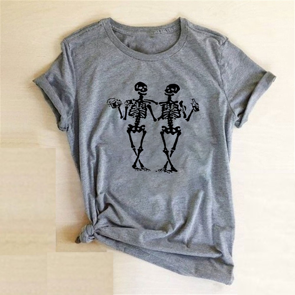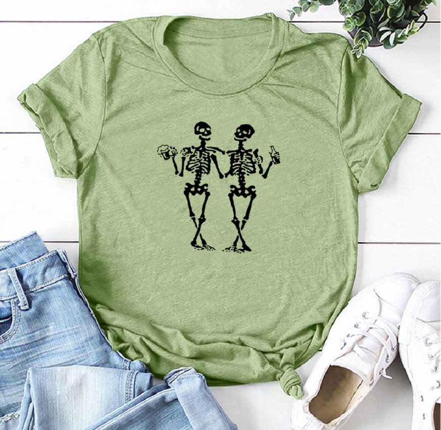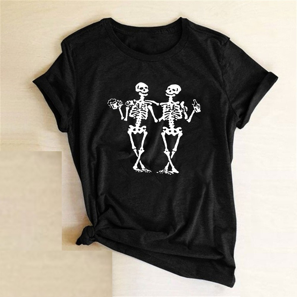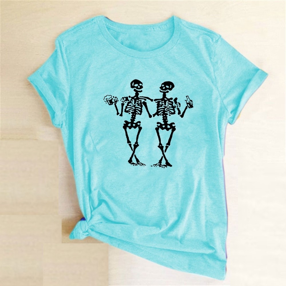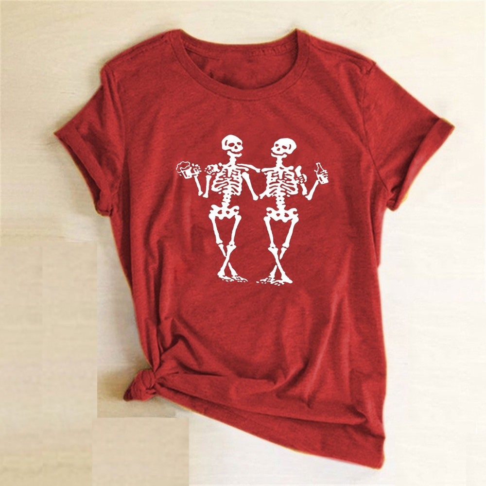 T-shirt da donna con stampa di scheletri