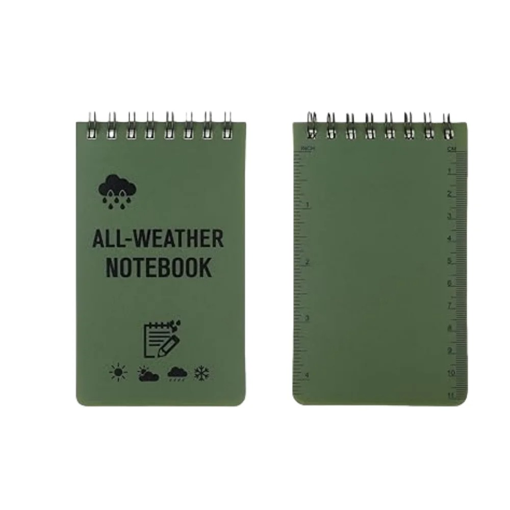 Pratico taccuino impermeabile con 100 pagine, rilegatura a spirale e righello sul retro. Ideale per attività all'aperto o lavoro in campo. Descrizione completa