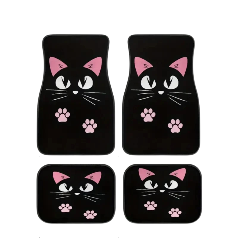 Set di tappeti per auto alla moda con originale motivo gattino che protegge l'interno da sporco e conferisce un aspetto distintivo al veicolo. Descrizione completa