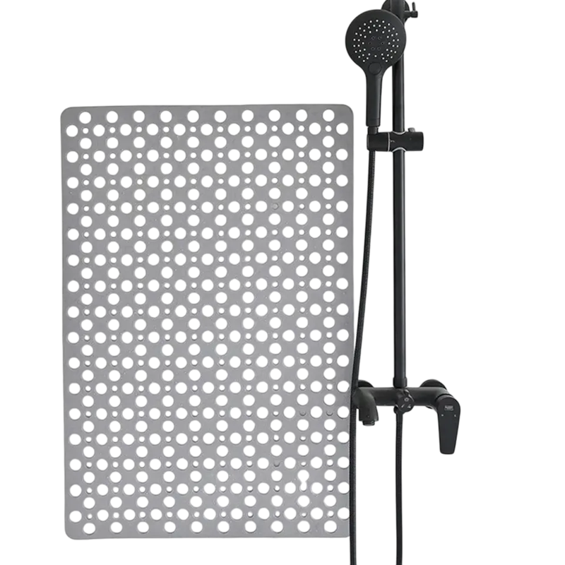 Questo tappetino da bagno di dimensioni 75x43 cm è una soluzione pratica per un uso sicuro e confortevole della vasca o della doccia. Grazie ai fori di drenaggio integrati, l'acqua viene efficacemente convogliata, evitando accumuli sulla superficie e mantenendo il tappetino asciutto. Le forti ventose sul lato inferiore garantiscono un'aderenza stabile al pavimento, impedendo scivolamenti durante l'uso. È realizzato con un materiale che si pulisce facilmente e si mantiene in condizioni igieniche. È adatto non solo per le abitazioni, ma anche per hotel, centri benessere, palestre e altri spazi ad alta frequenza d'uso.
