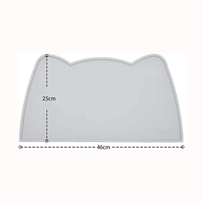 Pratico tappetino in silicone con superficie antiscivolo e bordo rialzato che protegge il pavimento da acqua e residui di cibo ad ogni pasto. Descrizione completa