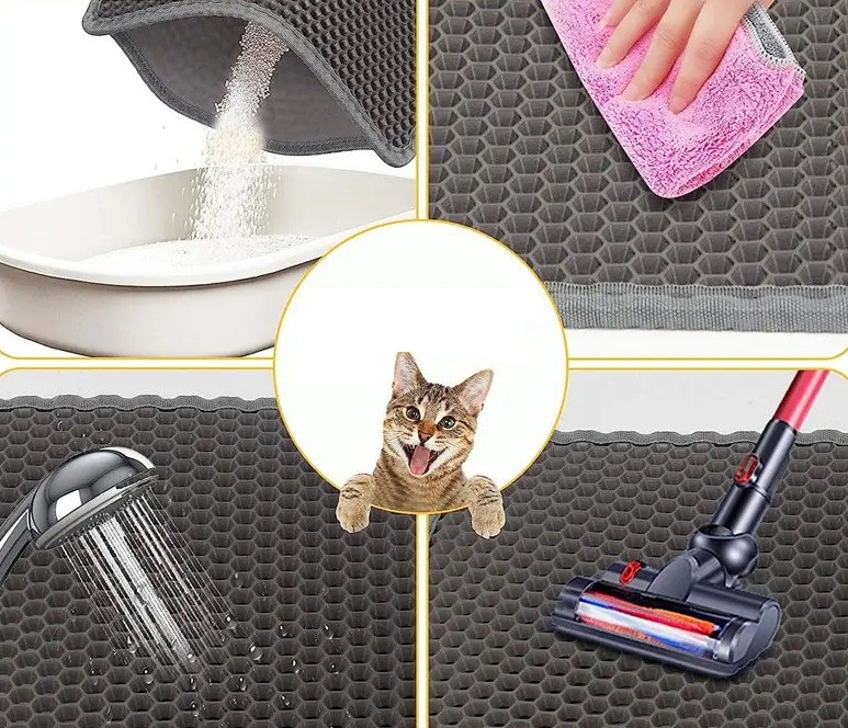 Tappetino per lettiera per gatti XL 55x75 cm Tappeto a due strati per catturare il lettiera Antiscivolo Tappetino igienico Impermeabile