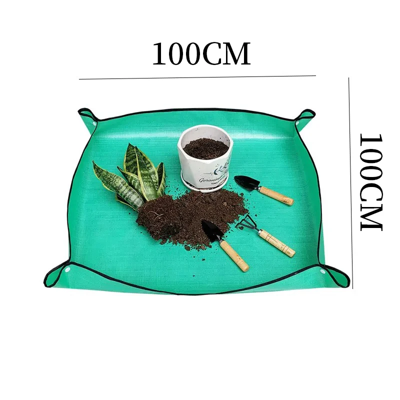 Tappetino da giardinaggio impermeabile 100 x 100 cm in materiale PE protegge le superfici durante il trapianto delle piante, facile da pulire e comodo da piegare. Descrizione completa