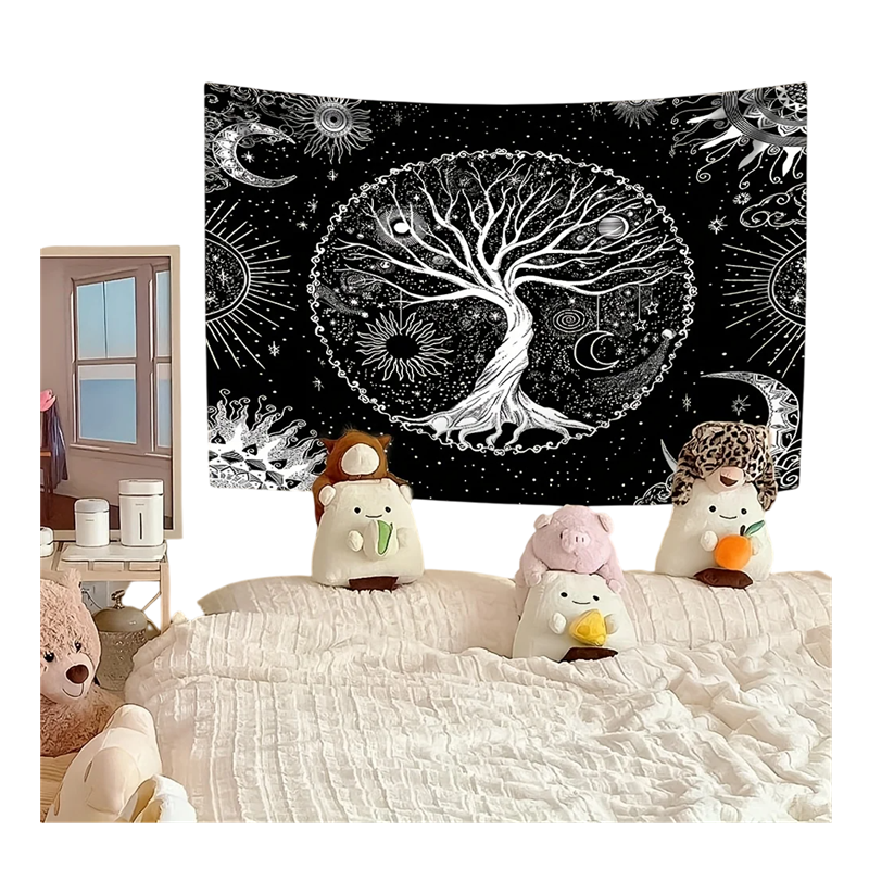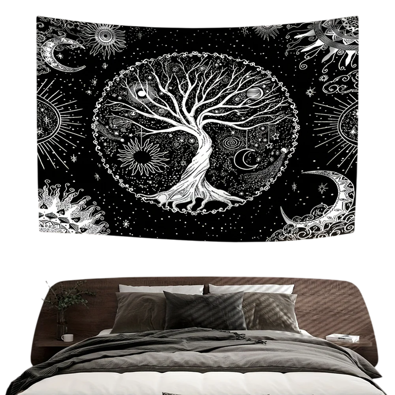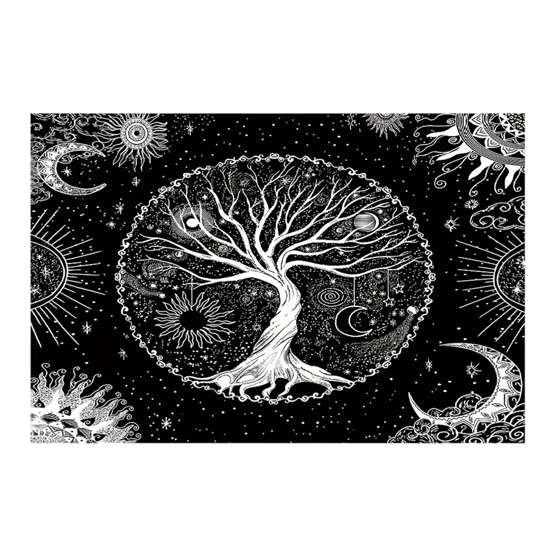 Pagina iniziale Pagina iniziale Casa e articoli domestici Decorazioni e accessori per la casa Arazzi da parete Tappeto bohémio nero Albero della vita Sole Luna Decorazione murale in tessuto Accessorio per la casa Sfondo per parete Lavabile in lavatrice
