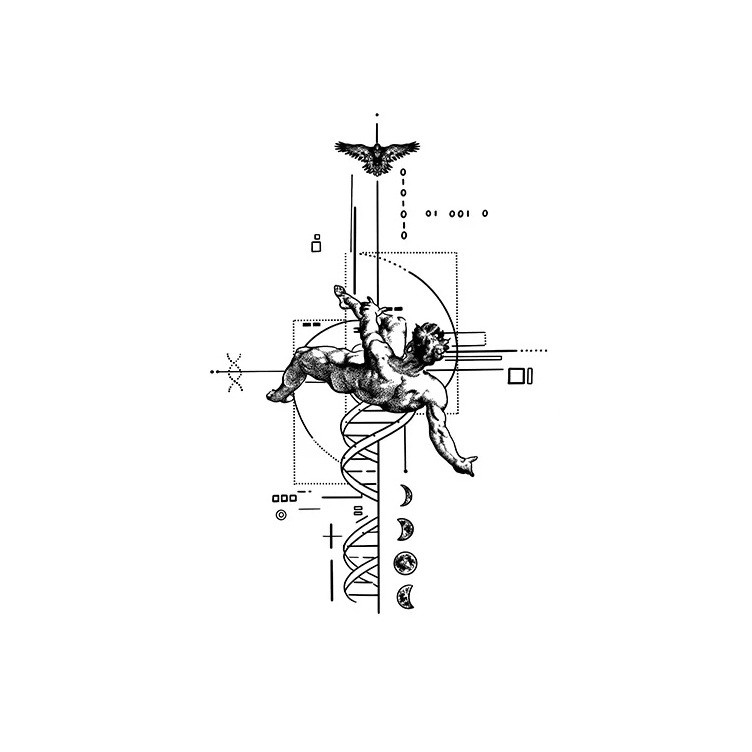 Tatuaggio temporaneo elegante con motivo dell'angelo cadente in design moderno. Facile applicazione, impermeabile, duraturo e dettagliato. Descrizione completa