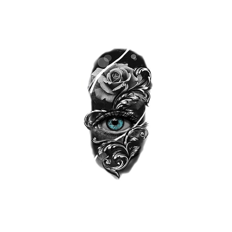 Tatuaggio temporaneo elegante con motivo di occhio e rosa, trattamento impermeabile e durata fino a 15 giorni. Design delicato ed elegante, facile applicazione in pochi minuti. Descrizione completa