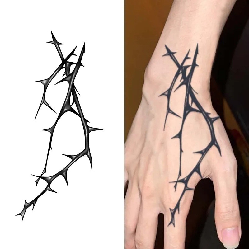 Grazie a una lavorazione dettagliata e alta resistenza, questo tatuaggio è un'ottima scelta per chi desidera provare un nuovo look senza impegno permanente. Perfetto per festival, feste, concerti o semplicemente come accessorio per il tuo stile quotidiano. Prova il motivo di spine, che metterà in risalto la tua personalità e darà al tuo look un tocco audace ed elegantemente ribelle!