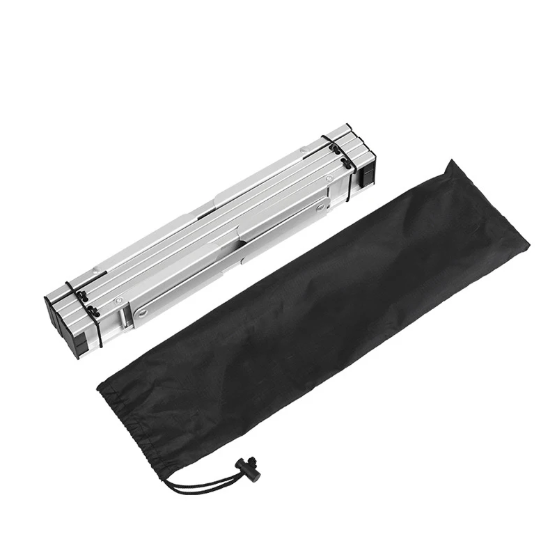 Questo tavolo pieghevole in alluminio ultraleggero è la scelta ideale per tutti gli amanti del campeggio, dei viaggi o della pesca. Grazie alle sue dimensioni compatte e al semplice meccanismo di piegatura, può essere facilmente trasportato ovunque e montato o smontato in un attimo. È realizzato in alluminio resistente, il che garantisce non solo un peso ridotto, ma anche una lunga durata e stabilità. Con una capacità di carico fino a 10 kg, offre abbastanza spazio per stoviglie, cibo o altre attrezzature.