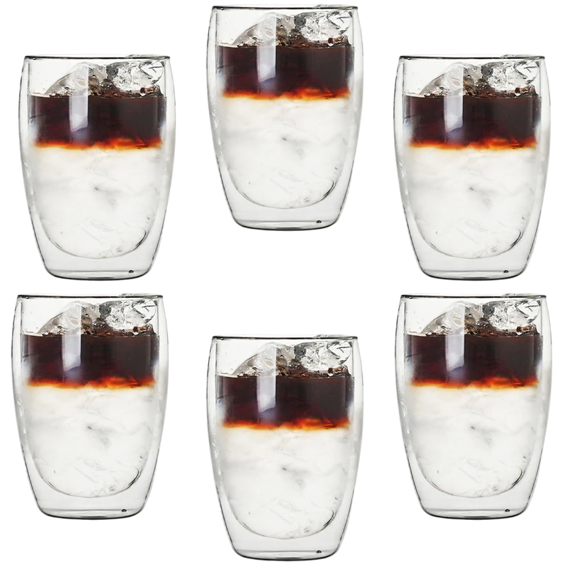 • Contenuto della confezione: 6× tazza di vetro con doppia parete senza manico 350 ml