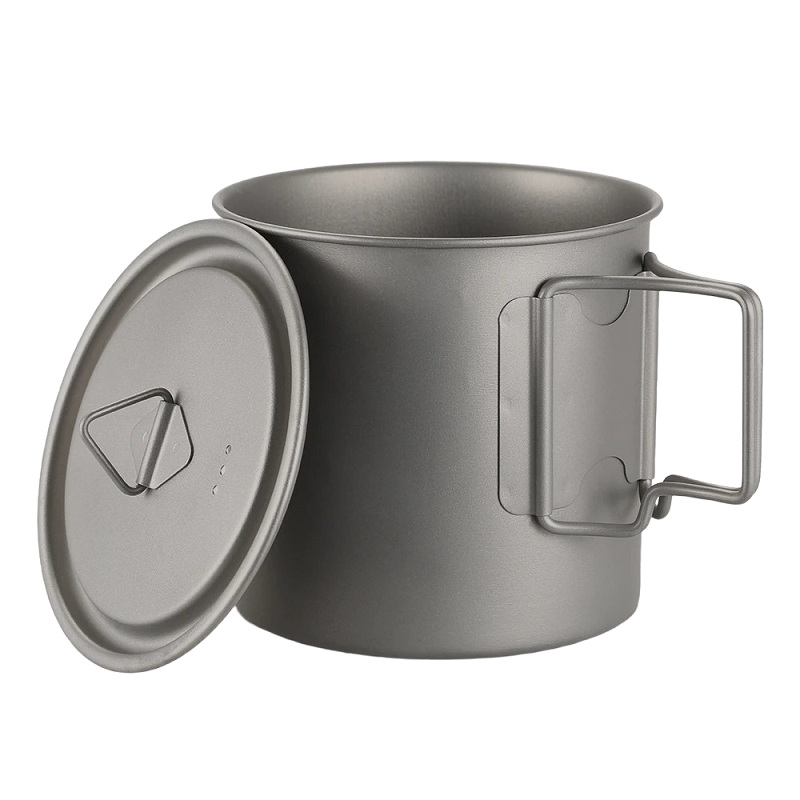 La tazza in titan con coperchio 650 ml è ideale per i viaggi. Grazie al manico pieghevole è molto compatta e non ingombra nella borsa. Che tu stia gustando una tazza di caffè attorno al falò o in escursione, questa tazza ti sarà sicuramente utile.
