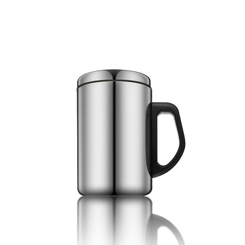 Il tazza termica ha un isolamento doppio e un coperchio.