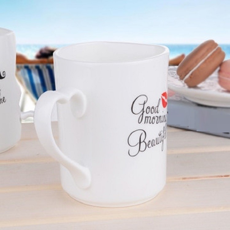 Le tazze per lui e per lei si incastrano l'una nell'altra e ricordano una coppia che si bacia.
