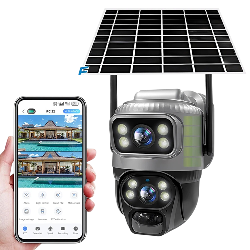 Telecamera di sicurezza solare 4G 8MP 4K con rilevamento del movimento e tracciamento automatico in plastica ABS nera e grigia per esterni
