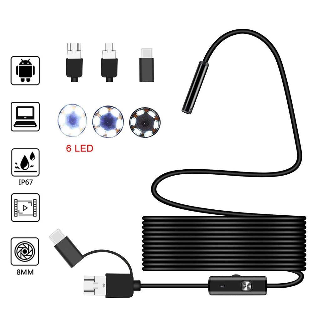 Pagina iniziale Pagina iniziale Foto, audio-video e gaming Videocamere digitali Telecamera endoscopica 7mm 3in1 USB Tipo-C microUSB IP67 mini telecamera con cavo rigido per ispezione Android e PC lunghezza 2m
