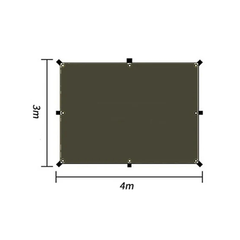 Questo telo da campeggio ultraleggero di dimensioni 3×4 metri offre una protezione affidabile contro il sole diretto, la pioggia e il vento ed è ideale per qualsiasi attività all'aperto. Grazie alle sue dimensioni, è adatto fino a 5–8 persone, rendendolo una soluzione eccellente per gite in famiglia, picnic, campeggio, giornate in spiaggia o festival. Il telo è realizzato in materiale impermeabile con protezione UV, che riflette efficacemente i raggi solari e impedisce al contempo l'infiltrazione dell'acqua. È estremamente leggero e facilmente trasportabile, il che è apprezzabile durante le escursioni a piedi e nei viaggi in auto. La confezione include anche una pratica borsa di stoccaggio, nella quale puoi facilmente ripiegare il telo e portarlo ovunque.
