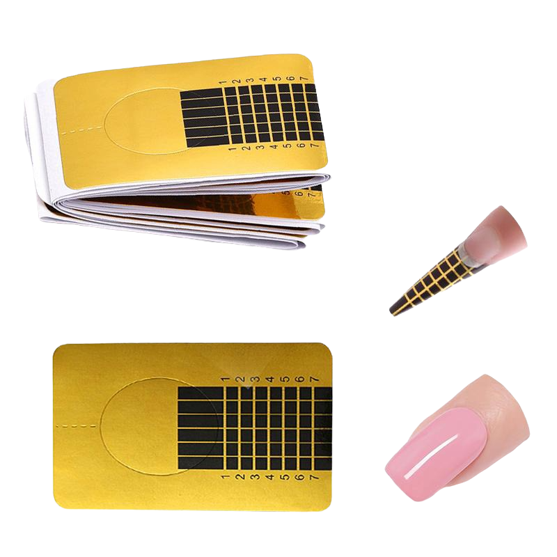 Template per unghie, che è destinato per allungare le tue unghie. La carta dorata assicura una buona aderenza. Si adatta a tutti i tipi di unghie.