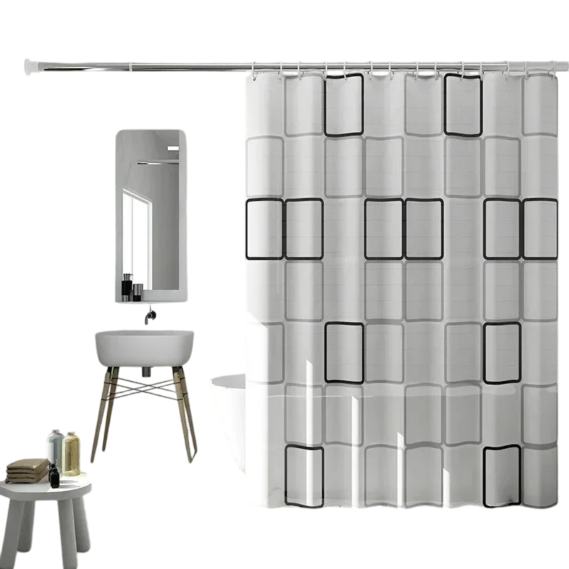 Pratica tenda da bagno con motivo moderno, trattamento impermeabile, superficie elastica e materiale rinforzato per un uso quotidiano. Descrizione completa