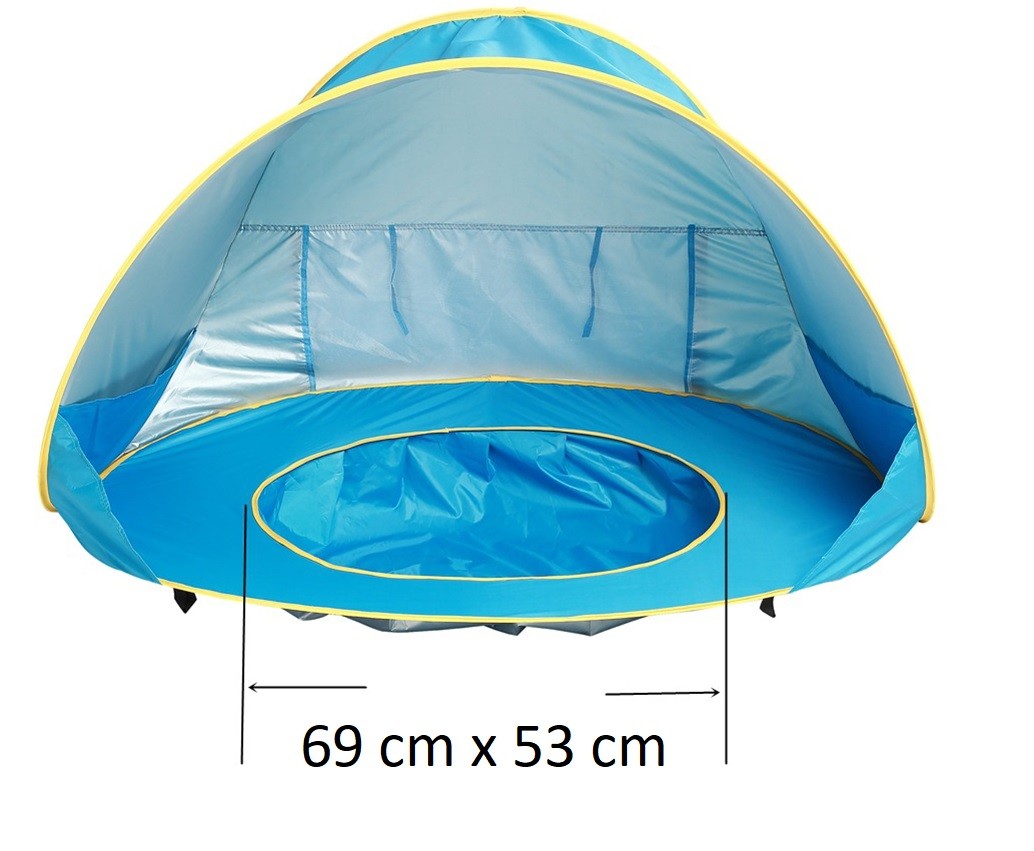 Dimensioni: tenda - 70 cm x 117 cm x 79 cm, piscina - 69 cm x 53 cm